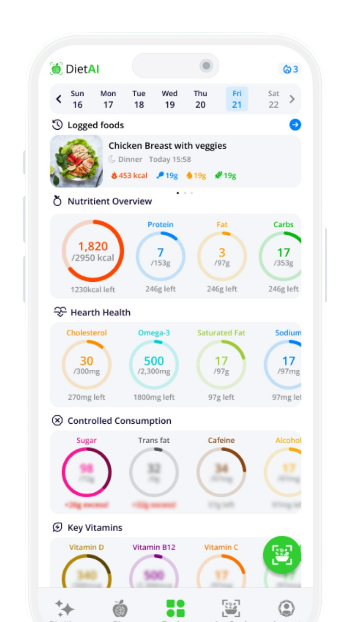 Tome el control de su nivel de azúcar en la sangre con DietAI, una aplicación inteligente para el análisis de nutrientes y planificación de comidas.